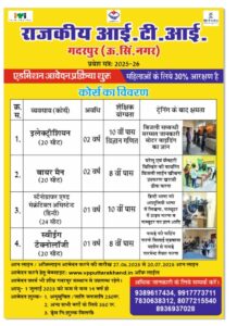 Admissions are now open for the academic session 2025–26 in the following NCVT approved trades